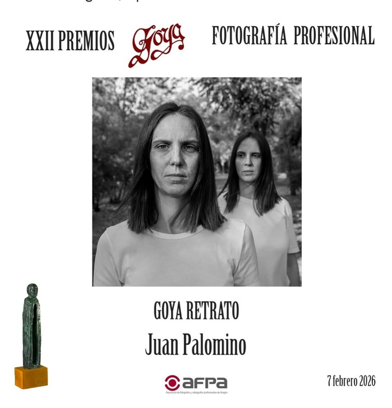 El fotógrafo almagreño Juan Palomino Bautista ha sido distinguido con el Premio Goya de Fotografía Profesional en la categoría de Retrato, en el marco de la XXII edición de los Premios Goya de Fotografía y Vídeo Profesional, celebrada este sábado, 7 de febrero, en la ciudad de Zaragoza.