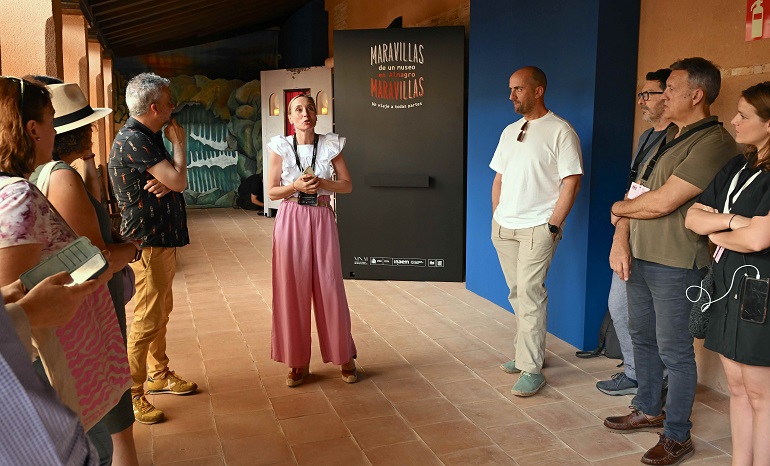 La exposición itinerante Maravillas de un museo, en Almagro maravillas. Un viaje a todas partes se puede visitar hasta el próximo 27 de julio en la galería superior del patio del MNAE y está comisariada por el catedrático de literatura de la UCM, Javier Huerta Calvo y diseñada por Flores Design_io. Se trata de una instalación audiovisual que pretende introducir a los espectadores del siglo XXI en el gran mundo del teatro, a través de las «maravillas» que, desde hace muchos años, atesora el Museo Nacional de Artes Escénicas.